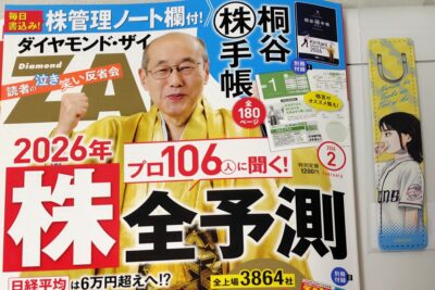 ダイヤモンド・ザイは定期購入してませんが、今月は新年で桐谷さんの株手帳が付録になってたので買ってみました。その時に本屋さんで『成瀬は天下を取りにいく』のブックマーカーを見つけたので衝動買い。