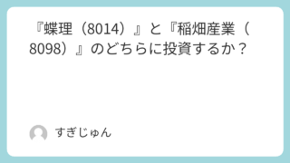 0000 詳細分析 投資メモ 『蝶理(8014)』と『稲畑産業(8098)』のどちらに投資するか?